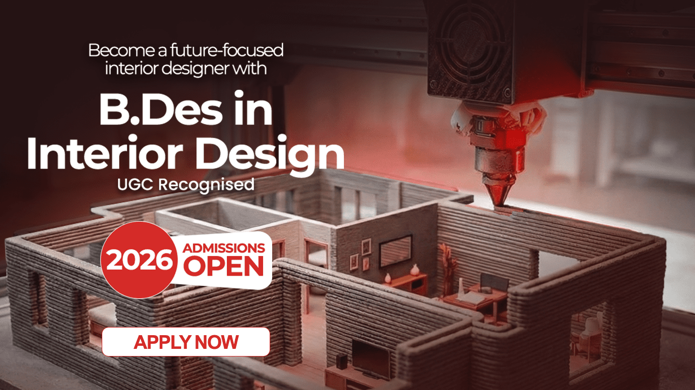 B.Des in Interiors program is designed to provide a comprehensive understanding of how spaces are designed. It covers an exploration of architecture and design for residential, commercial, and retail spaces. Students of the course gain in-depth knowledge of design concepts, materials, spatial techniques, and modern design and spatial modelling technologies, keeping them abreast of the industry.